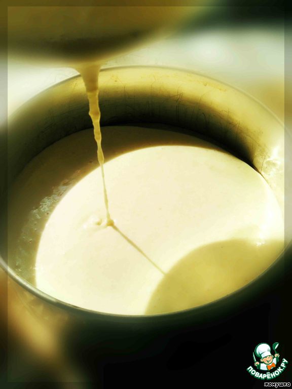 Оставшиеся 2 яйца разделяем на белки и желтки, нам понадобятся только белки. Белки взбиваем в пышную пену. Очень аккуратно смешиваем с яичной массой и выкладываем в форму. Тесто получается достаточно жидким!!!