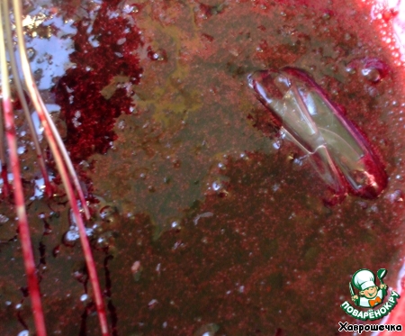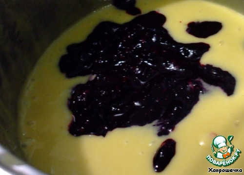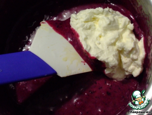 Остудить до комнатной температуры и добавить пюре из черной смородины. Перемешать.