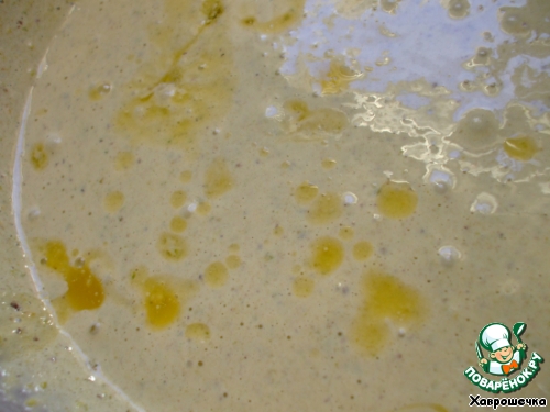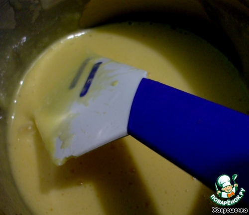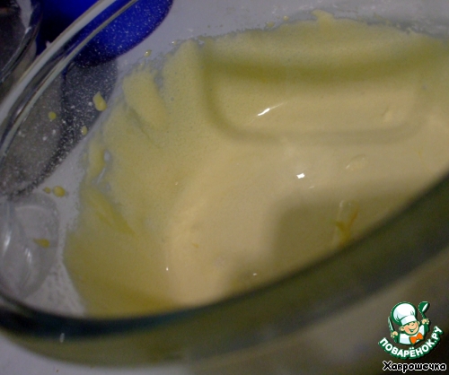Влить растопленное сливочное масло, продолжая взбивать.