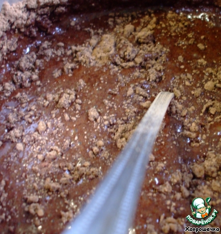 Смешайть в небольшой кастрюльке 50 г воды, 90 г мелкого сахара, 25 г сиропа глюкозы, 75 г сливок и 50 г несладкого какао-порошка хорошего качества. Какао-порошок просеять перед употреблением. Нагреть, но не доводить до кипения, постоянно помешивая смесь. Все ингредиенты должны объединиться и стать однородной массой.
