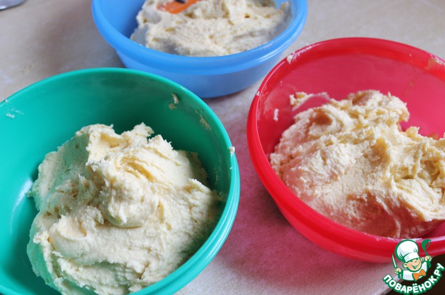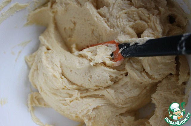 Добавляем муку и разрыхлитель, получается такое тесто мягкое.