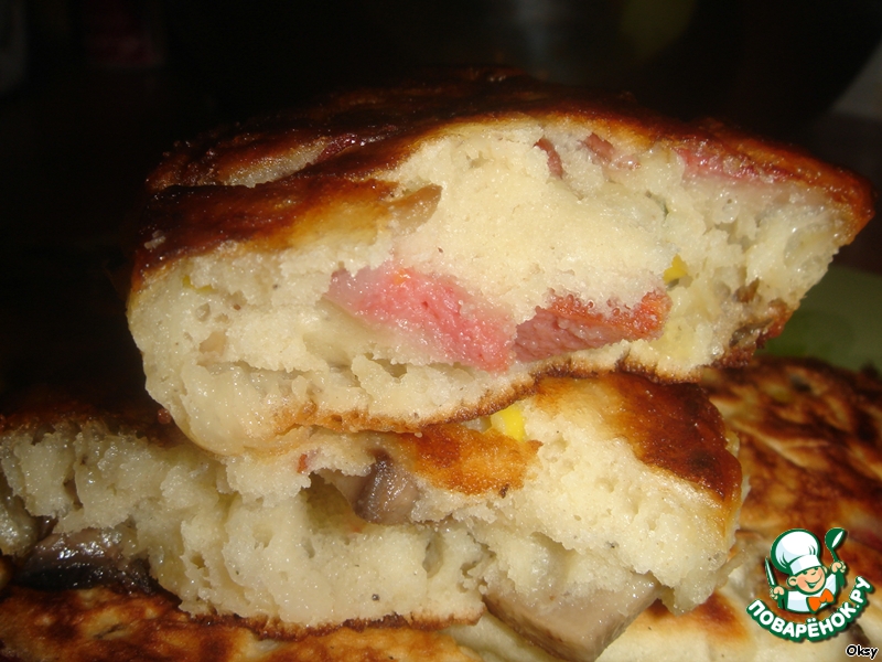 | Я очень люблю побаловать мужа, да и себя вкусными ароматными оладьями на завтрак воскресным утром. Но в последнее время муж стал отказываться от сладких оладушек. Пришлось поэкспериментировать с добавками, и вот уже не первый раз в воскресенье утром муж просыпается на запах вкусных сытных оладушек с грибами, охотничьими колбасками и кукурузой. |