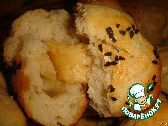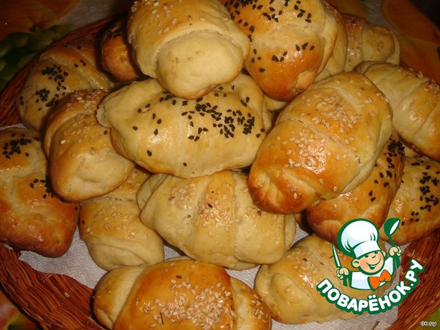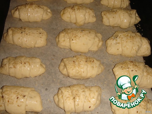 А это готовые рогалики с сыром, чтобы отличать, посыпала черным кунжутом (может он и не так называется).