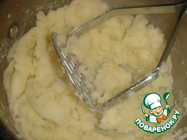 Сварить картофель и сделать пюре. Так как пюре для теста, я ничего не добавляла в пюре (молоко, яйцо), просто размяла отваренный картофель.
