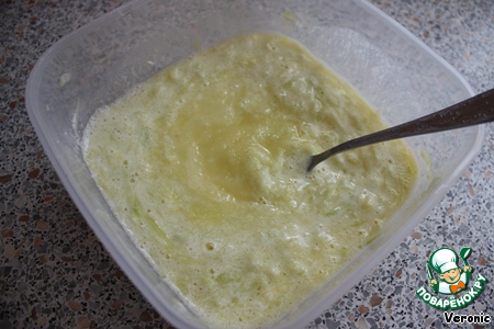 Вымешиваем вилкой, добавляем сахар, соль и кефир