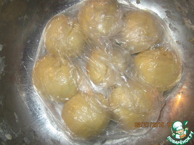 И складываем в чашку или на блюдо рядышком друг с другом и накрываем целлофаном (на фото у меня 8 шариков-один специально для дочи так как помогалик всегда рядом )на 15 -20 минут