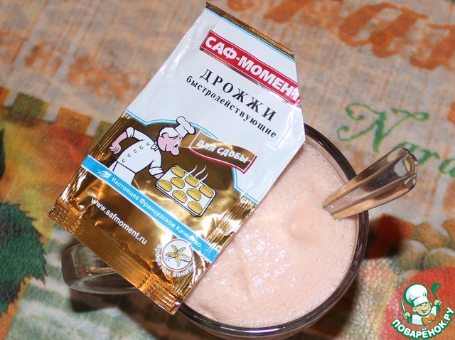 Для начала разведём дрожжи в не большом количестве тёплой воды с добавлением 1 ч. л сахара. Если берёте пакетик сухих дрожжей"для сдобы", то ванилин в тесто не добавляем, т. к в дрожжах он уже есть...