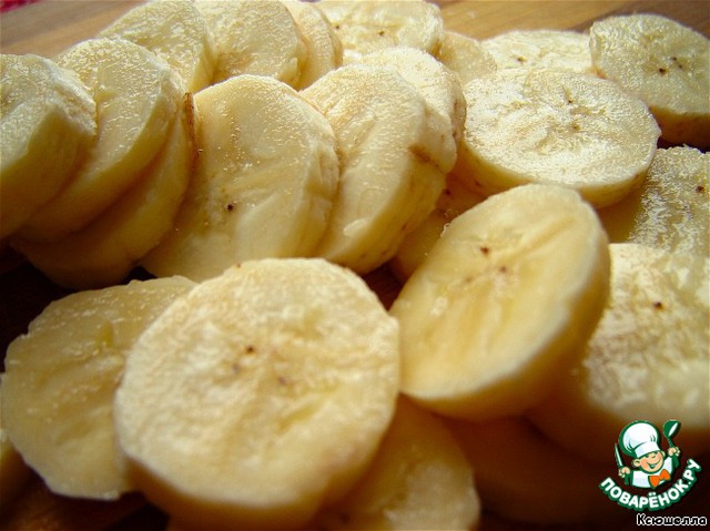 Банан нарезаем кружочками.
