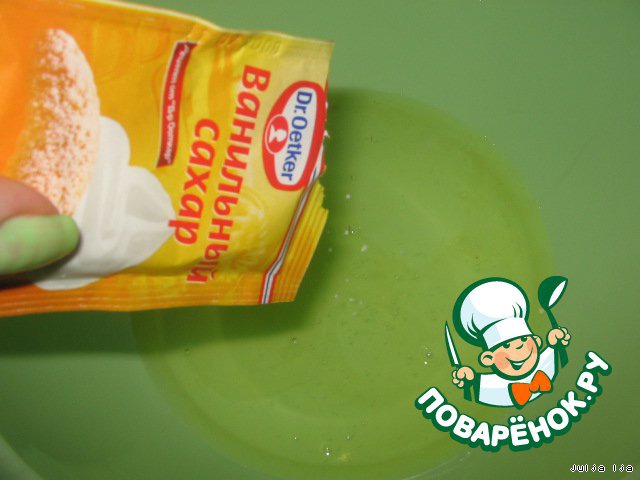 В белки добавляем щепотку соли и ванильный сахар.