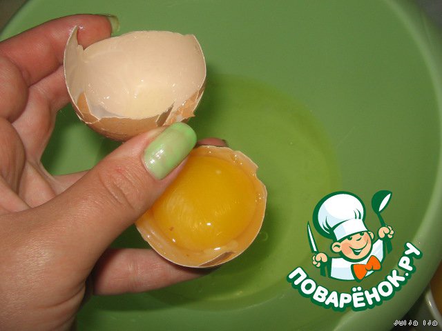 Яйца (холодные), разделяем на белки и желтки.