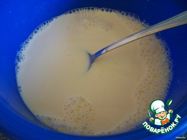 Смешать молоко с яйцами,