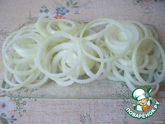 Лук порезать кольцами 2-3 мм. Колечки отделить друг от друга.