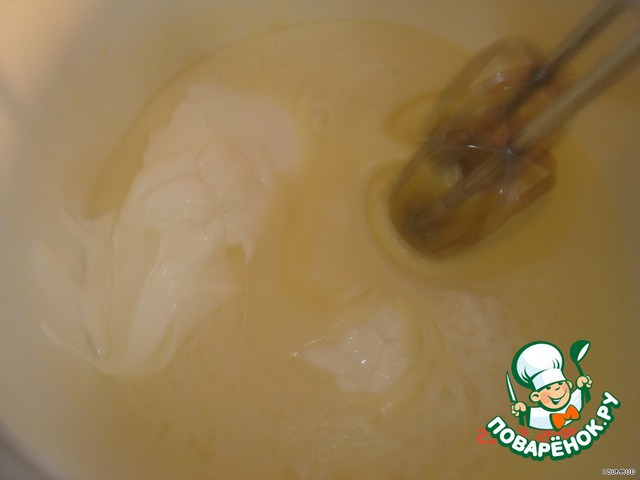 готовим крем:взбить сметану с сахаром и добавить желатин
