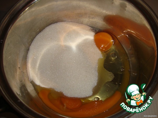 Сахар перемешиваем с маслом и яйцом