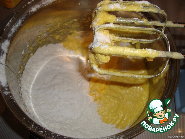 Добавляем муку, соду перемешиваем.