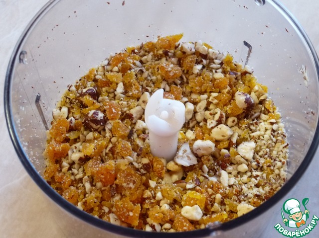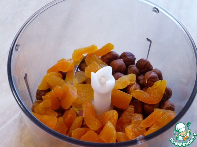 Перемолоть орехи и курагу.