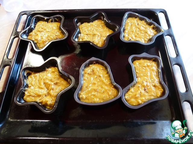 Смазать формочки для выпекания маргарином или сливочным маслом, выложить тесто. Выкладывайте тесто с таким расчетом, что пряники увеличиться в двое. Поместить в предварительно разогретую духовку до 180 градусов на 40 минут. Время корректируйте под свою печь, может занять более или менее времени. Готовность проверяйте деревянной палочкой, если тесто к палочке не липнет, то пряники готовы.