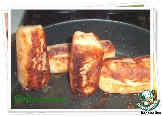 ...обжариваем наши сырники вначале с 4 сторон (это как бы боковые поверхности нашего цилиндра), а потом еще 2 стороны основания. На фото я показала, как это.
