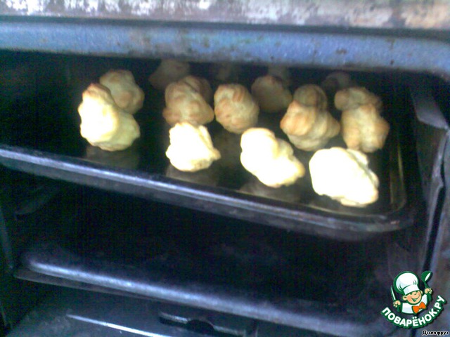 Выпекать сначала на сильном огне, до тех пор, пока они не поднимутся и слегка не зарумянятся, затем огонь уменьшить, подсушивать 10-15 мин. на маленьком огне. К концу выпекания огонь в духовке убирать, дверцу приоткрывать и дать немного остыть.
