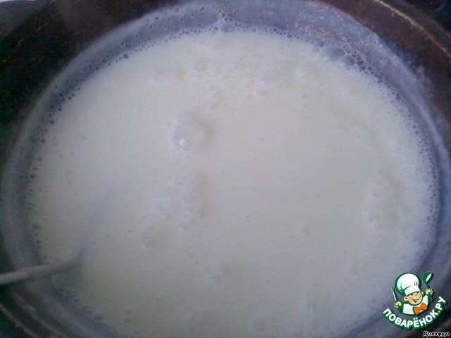 В небольшую толстостенную посуду (лучше чугунную) налить воду и добавить маргарин, нарезанный кусочками, соль, доводим до кипения.