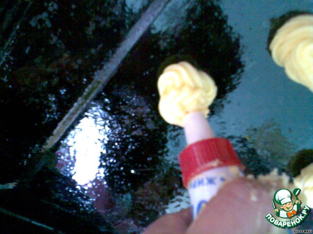 Изделия выпекать сразу после приготовления теста. Готовое тесто кладут в конвертик, шприц или кондитерский мешок с гладкой или резной трубочкой и отсаживают на слегка смазанный маслом противень.