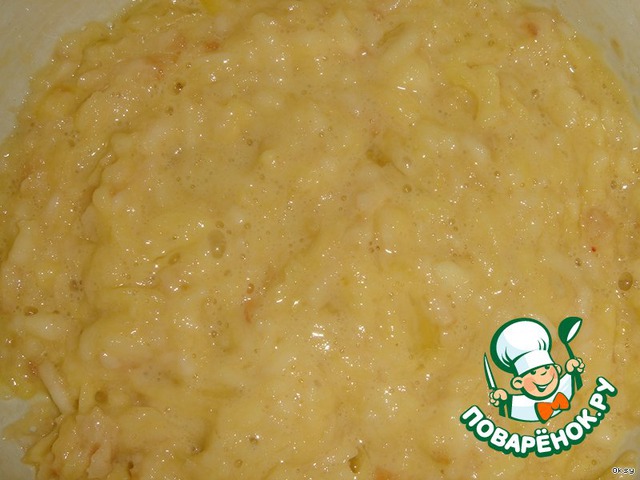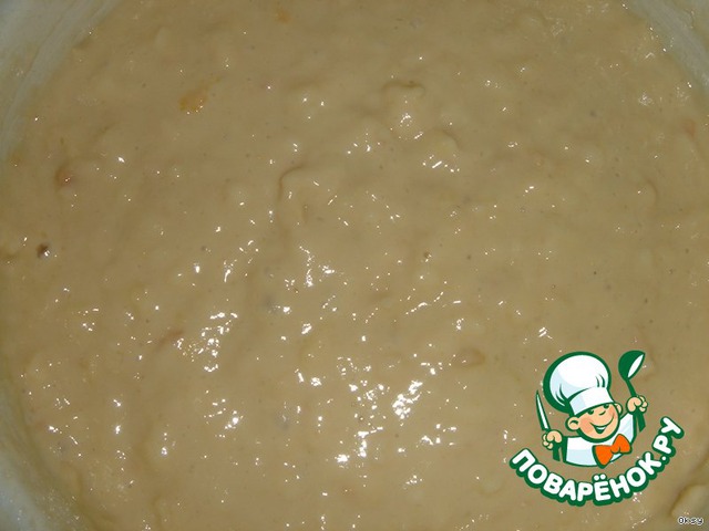 Добавить муку, перемешать, затем порциями влить шампанское до образования однородного теста густоты сметаны.