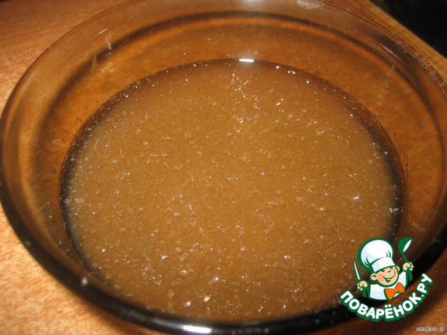 Замоченный желатин развести в горячем апельсиновом соке, остудить и вылить на пирог. Поместить пирог в прохладное место.