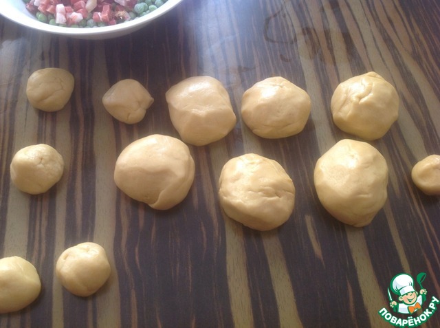 Когда тесто "отдохнуло", Разделим его на 6 больших и 6 маленьких шариков.