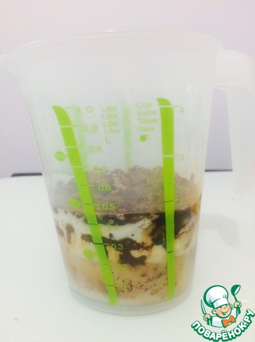 Наливаем молоко до половины (250 мл), всыпаем какао, добавляем желток, растительное масло, соду, специи, соль, досыпаем сахар до уровня 500 мл. Все, на этом роль банки заканчивается, так что можно было ее не брать, но для меня это прям как ритуал какой то!