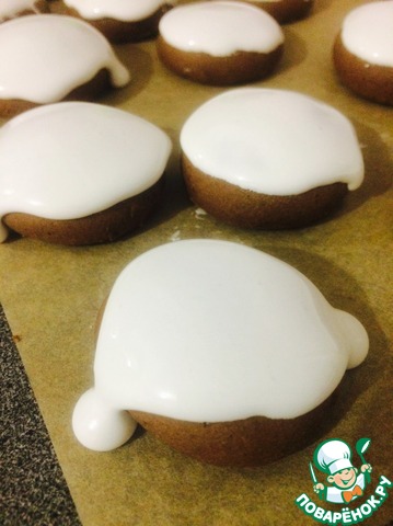 Готовые пряники покрываем глазурью (мне хватает прям впритык, чтобы каждый покрыть толстеньким слоем).