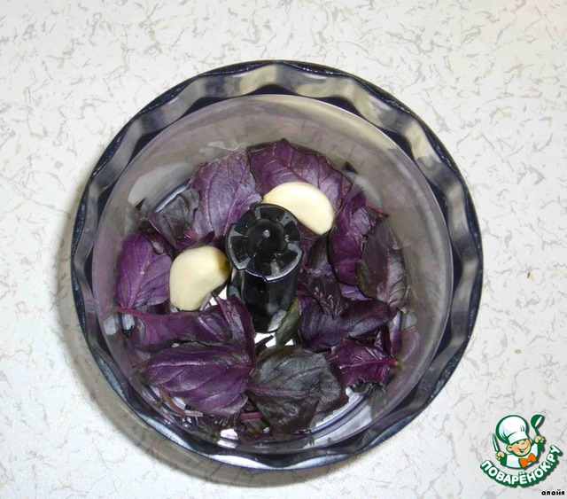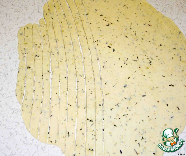 Добавила базилик с чесноком в тесто, замесила в однородную массу.