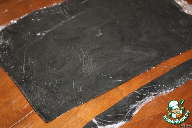 250гр.марципана смешать с чёрным красителем,я использовала натуральный краситель,на основе чернил каракатицы(еле разыскала)))