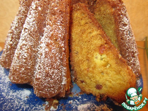 Готовый кекс вынуть из формы когда он остынет и посыпать сахарной пудрой.