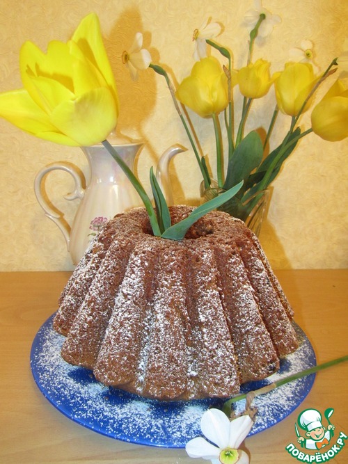 Готовое тесто вылить в форму для выпекания кекса и отправить в разогретый до 180 градусов духовой шкаф на 1 час.