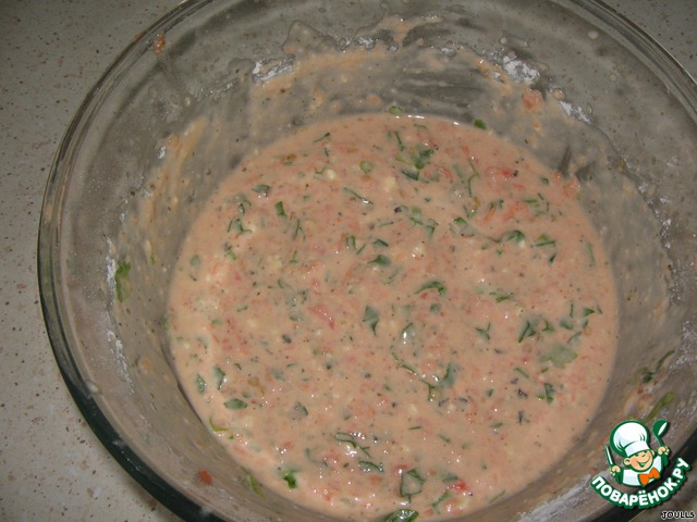 Замешиваем тесто консистенции как на обычные оладьи, т.е. жидкой сметаны.