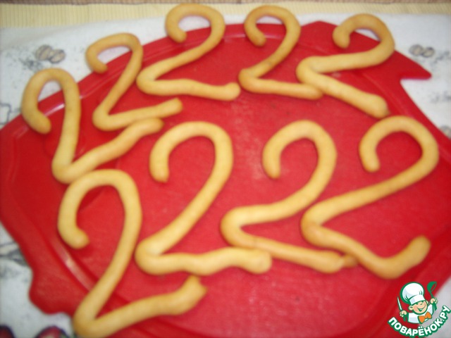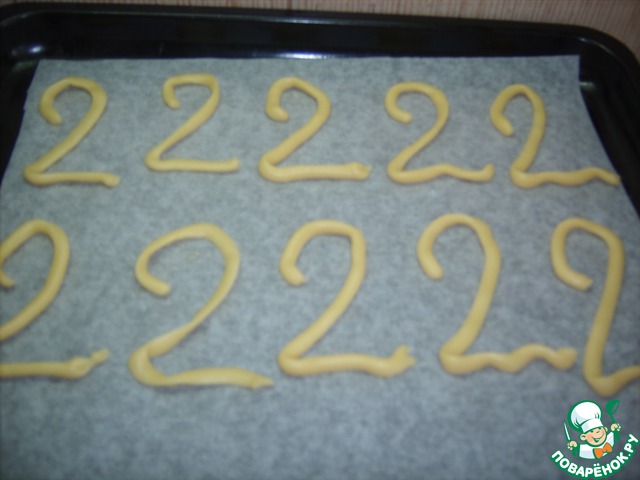 С помощью кулинарного мешка на пергаментную бумагу выдавим двойки.