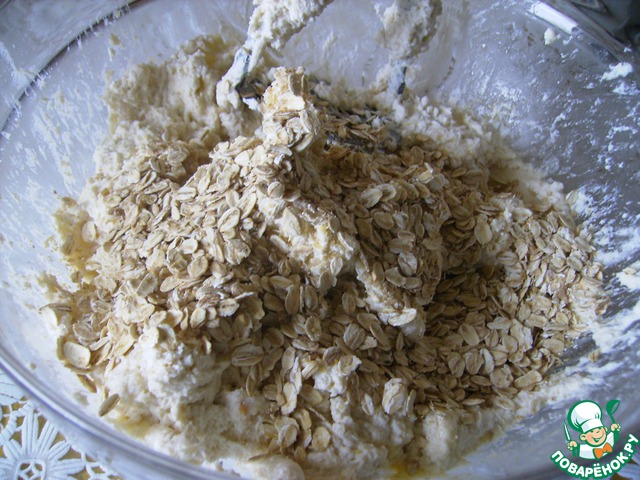 Всыпать овсянку и хорошенько перемешать ещё раз.