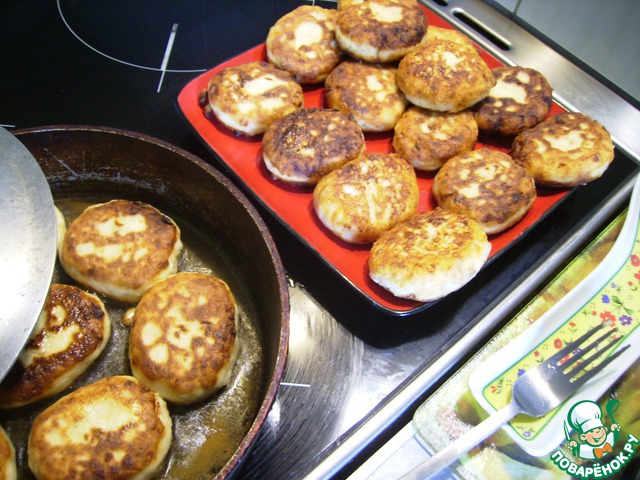 Жарить сырники на среднем огне под крышкой.