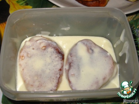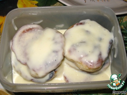 По ходу выпечки окунаем готовые оладьи в заливку.