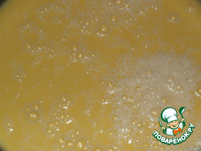 В отдельной eмкости взбить молоко, растопленное сливочное масло, желтки и ванильный сахар.