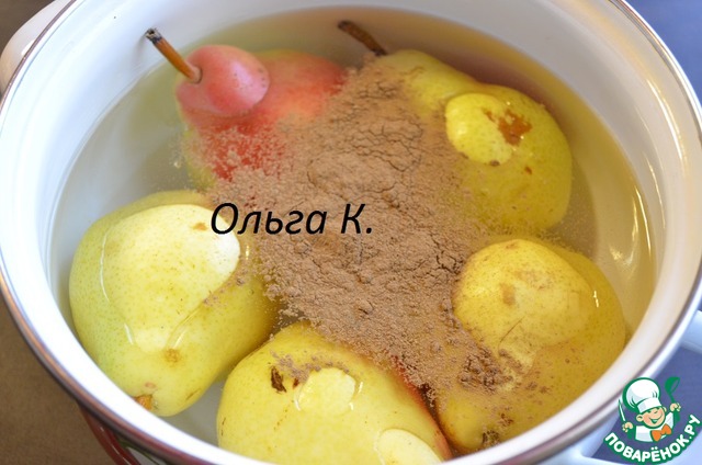 Нужно подготовить груши: помыть, положить в кастрюльку и залить водой, так чтоб вода их полностью покрывала. Добавить в воду мед, столько чтоб вам было сладко, 2 чайных ложки корицы "Haas"и отварить груши до полной готовности. Достать из сиропа и остудить. Сам сироп не выливать.