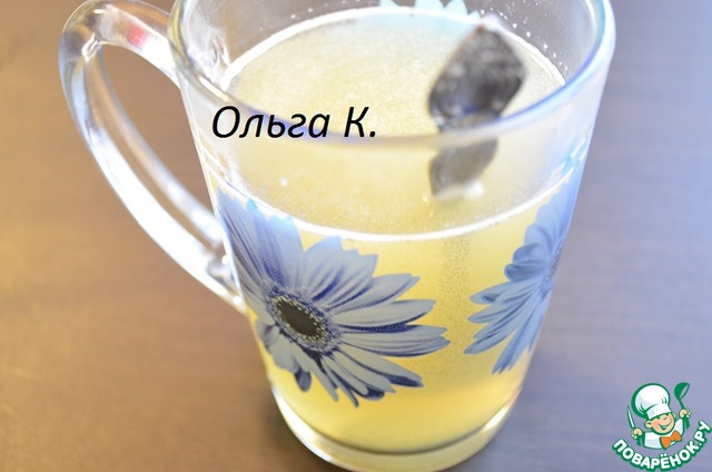 Желатин залить холодной кипяченой водой для набухания, у меня получился полный стакан ( вместе с водой).