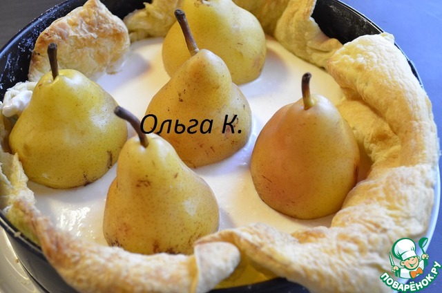 Творожную массу вылить в получившуюся основу, в творог вставить груши и убрать в холодильник до полного застывания. ( груши получаются очень вкусные, пропитанные коричными ароматами и мдовой сладостью)