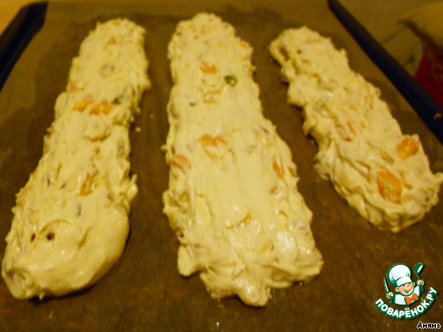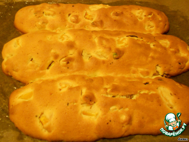 По вкусу у меня получились такие же кантуччи, как и у сестры, которая живет в Италии, но вид батончиков — подкачал :( думаю, нужно было добавить 2 стакана муки, чтобы тесто было более плотное...