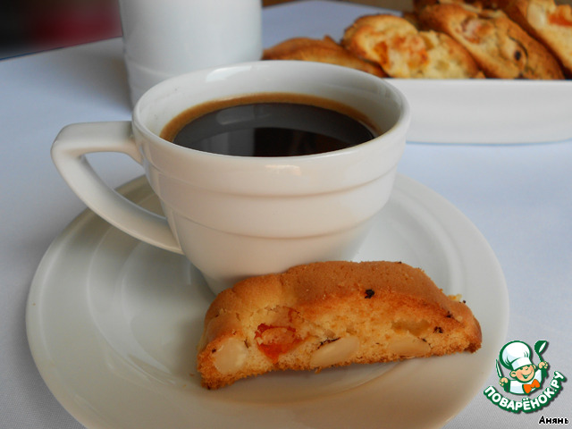 | Cantuccini — это кулинарный восторг из Флоренции! Хрустящие, с цельным орехом, ароматной кислинкой абрикоса, просто тают во рту! Их можно есть в любое время суток: с кофе, с чаем или же макать в красное вино, как это принято в Тоскани. |