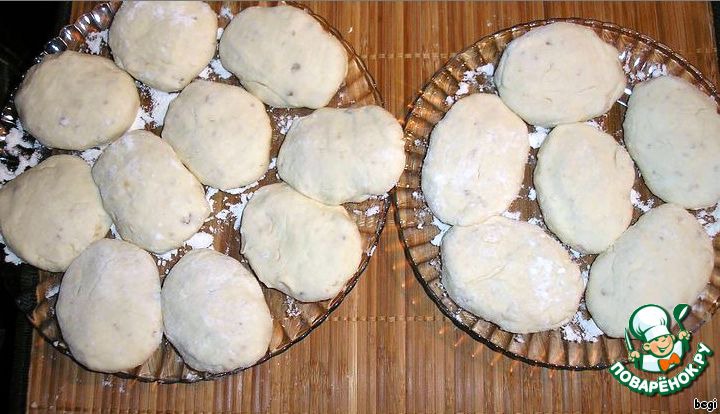 Полученную массу скатать в колбаску, порезать на кружочки и обвалять их в муке.