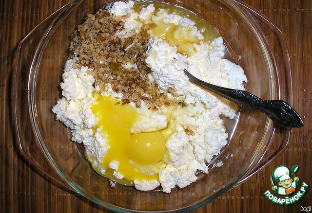 | Многие из нас делают сырники с разной начинкой, попробуйте и мой вариант - творог, мед и грецкие орехи! Очень вкусные! |