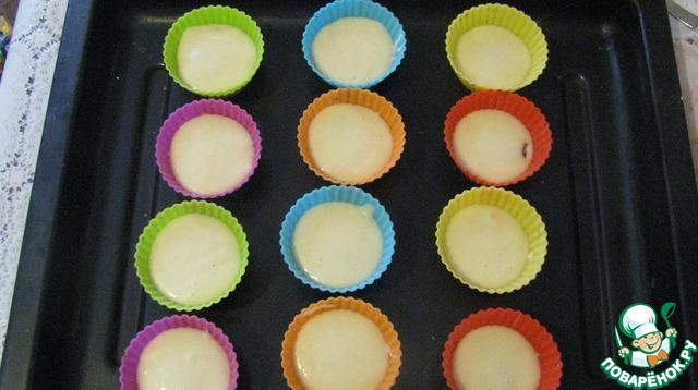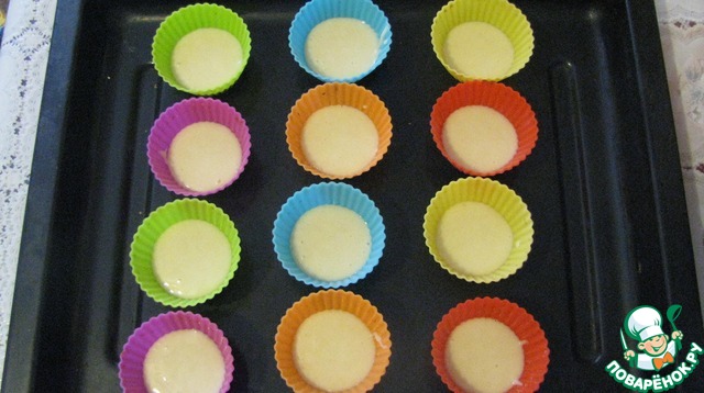 У меня формы силиконовые и потому их не смазываю ни чем. наливаю по 0,5 ст. л теста в формочки.