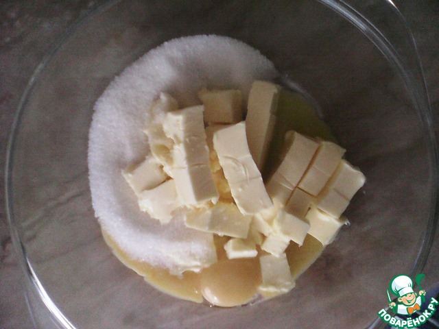 Желтки соединяем с размягченным сливочным маслом и сахаром. Растираем до однородной массы.