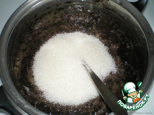 добавляем сахар (если у вас очень сладкое варенье, сахара можно меньше положить)